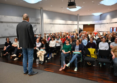 Der Verhaltensforscher Univ.-Lekt. Mag. Gregor Fauma hielt einen fesselnden Vortrag mit dem Titel „Die Biologie hinter KI“ und stellte dabei die interessante Frage, ob das menschliche Gehirn in der Lage ist, mit künstlicher Intelligenz umzugehen.