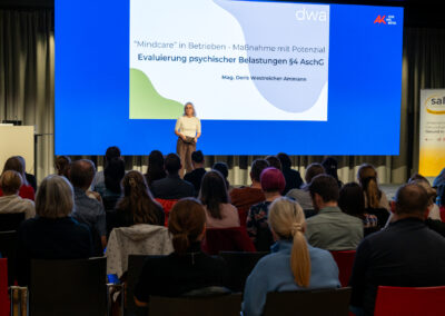 Im Anschluss zeigte Doris Westreicher-Ammann in ihrem Vortrag „Mindcare im Unternehmen“, wie Betriebe aktiv Maßnahmen zur Förderung der seelischen Gesundheit setzen können. Anhand konkreter Beispiele wurde deutlich, wie „Mindcare“ erfolgreich in den Arbeitsalltag integriert werden kann – zum Wohlbefinden aller Mitarbeitenden.