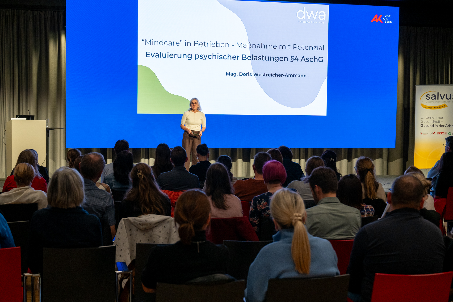 Im Anschluss zeigte Doris Westreicher-Ammann in ihrem Vortrag „Mindcare im Unternehmen“, wie Betriebe aktiv Maßnahmen zur Förderung der seelischen Gesundheit setzen können. Anhand konkreter Beispiele wurde deutlich, wie „Mindcare“ erfolgreich in den Arbeitsalltag integriert werden kann – zum Wohlbefinden aller Mitarbeitenden.